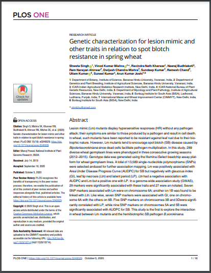 Genetic characterization for lesion mimic and other traits in relation to spot blotch resistance in spring wheat