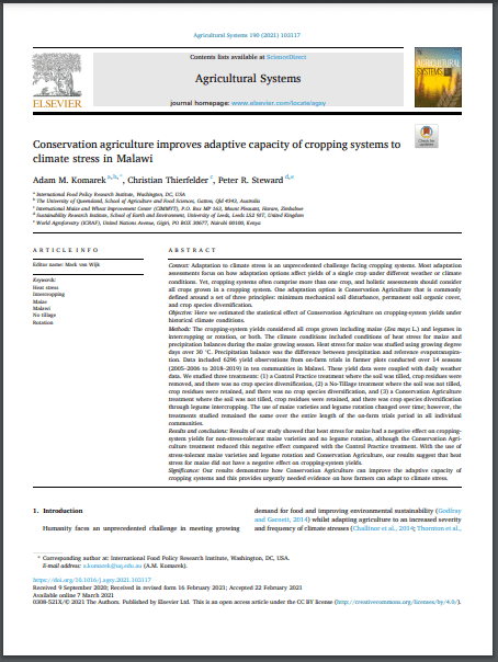 Conservation agriculture improves adaptive capacity of cropping systems to climate stress in Malawi