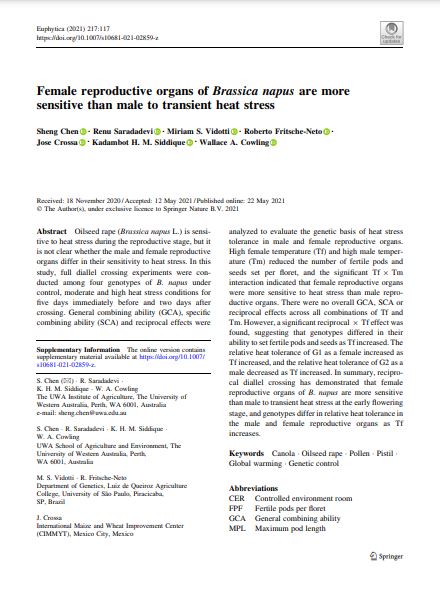 Female reproductive organs of Brassica napus are more sensitive than male to transient heat stress
